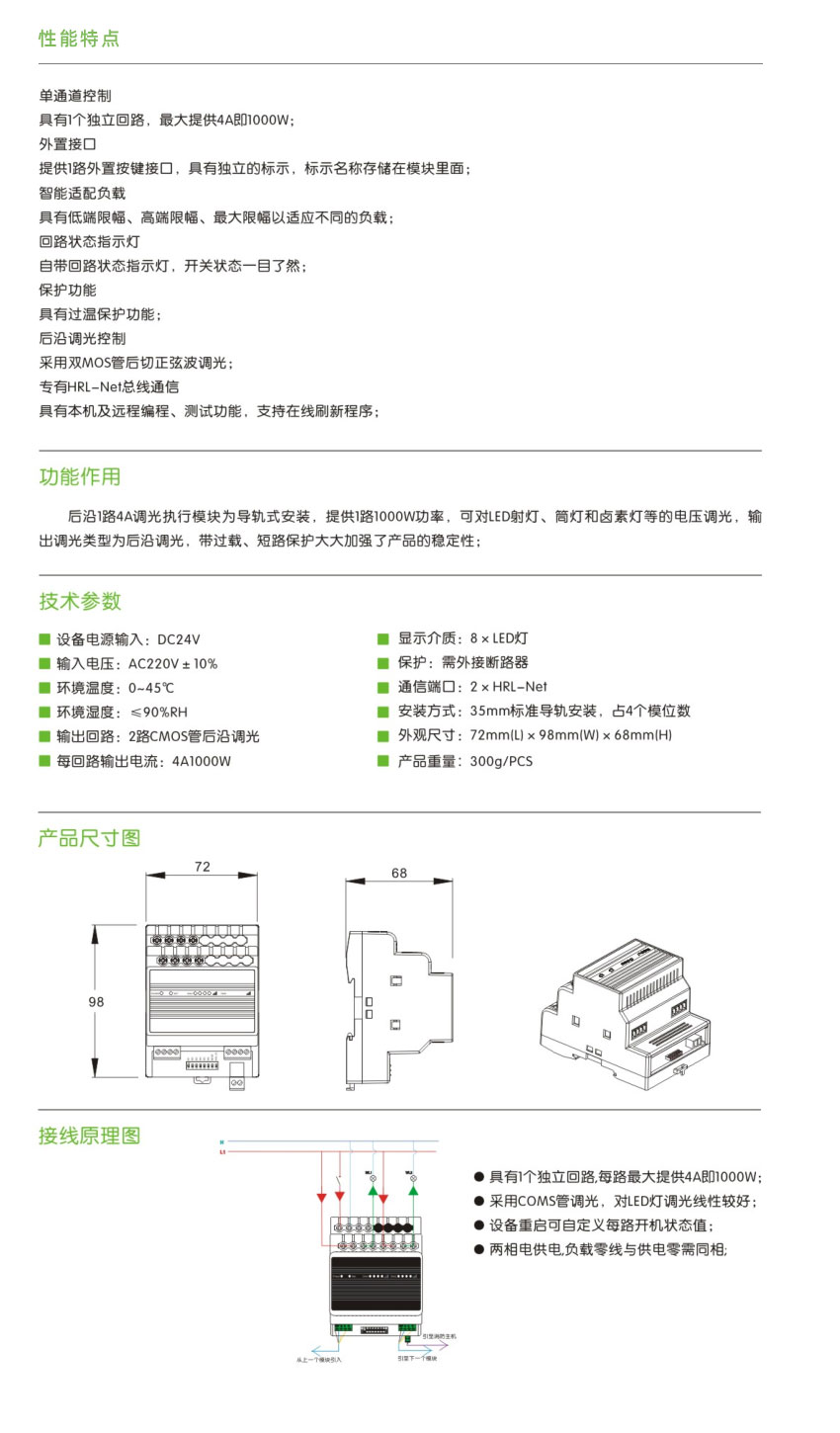 QYM-D0104B后沿1路4A调光执行模块
